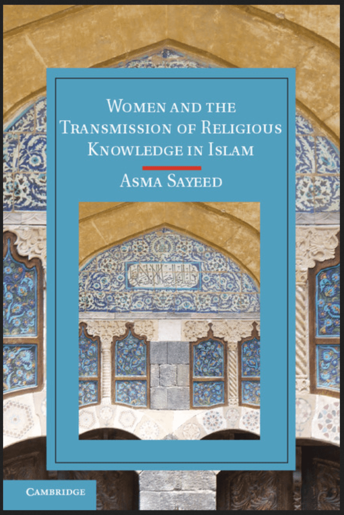 [2] Asma Sayeed, Women and the Transmission of Religious Knowledge in Islam (Cambridge: Cambridge University Press, 2013), 25.
